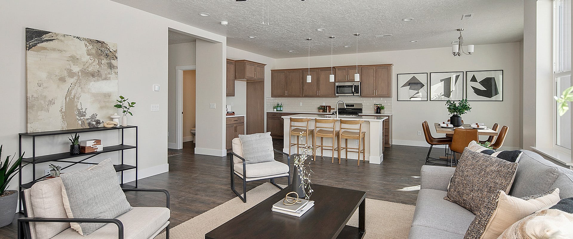 Step into the Glendale, two-story home designed for modern living. On the main level, the bright and open kitchen overlooks the spacious great room and dining nook, creating a seamless flow for entertaining and everyday living. Adjacent to the great room, a dedicated playroom offers a space for children to enjoy playtime and keep toys out of sight. Convenience is key, with a drop zone featuring a mud bench located off the garage is perfect for storing outdoor gear and keeping the home organized. A half bath on this level adds practicality for guests.